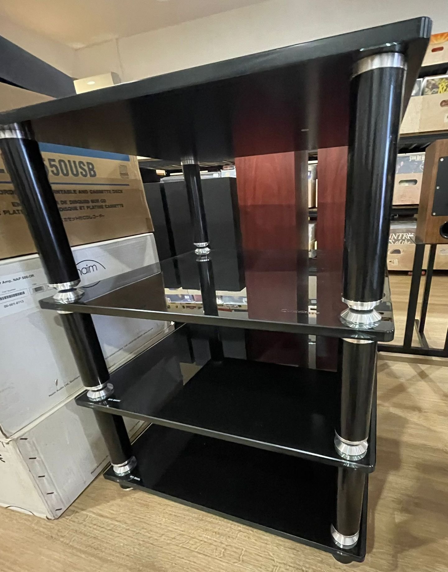 • NorStone ESSE HiFi Rack (4 Tier) – A high-quality hi-fi furniture solution built with gloss-black epoxy-lacquered steel and tempered glass shelves, offering clean aesthetics and functional support for serious audio systems.Â